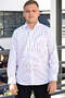 Beyaz Zemin Üzerine Kırmızı Çizgili Saten Dokulu Düğmeli Yaka Tek Cepli Erkek Gömlek