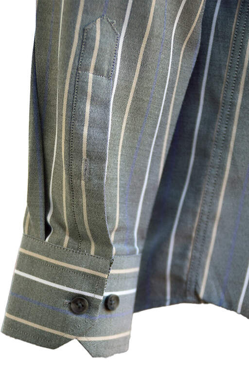 Blue Cream Powder Striped One-Pocket Button-down Collar Classic Fit Cotton Men's Shirt in Gray