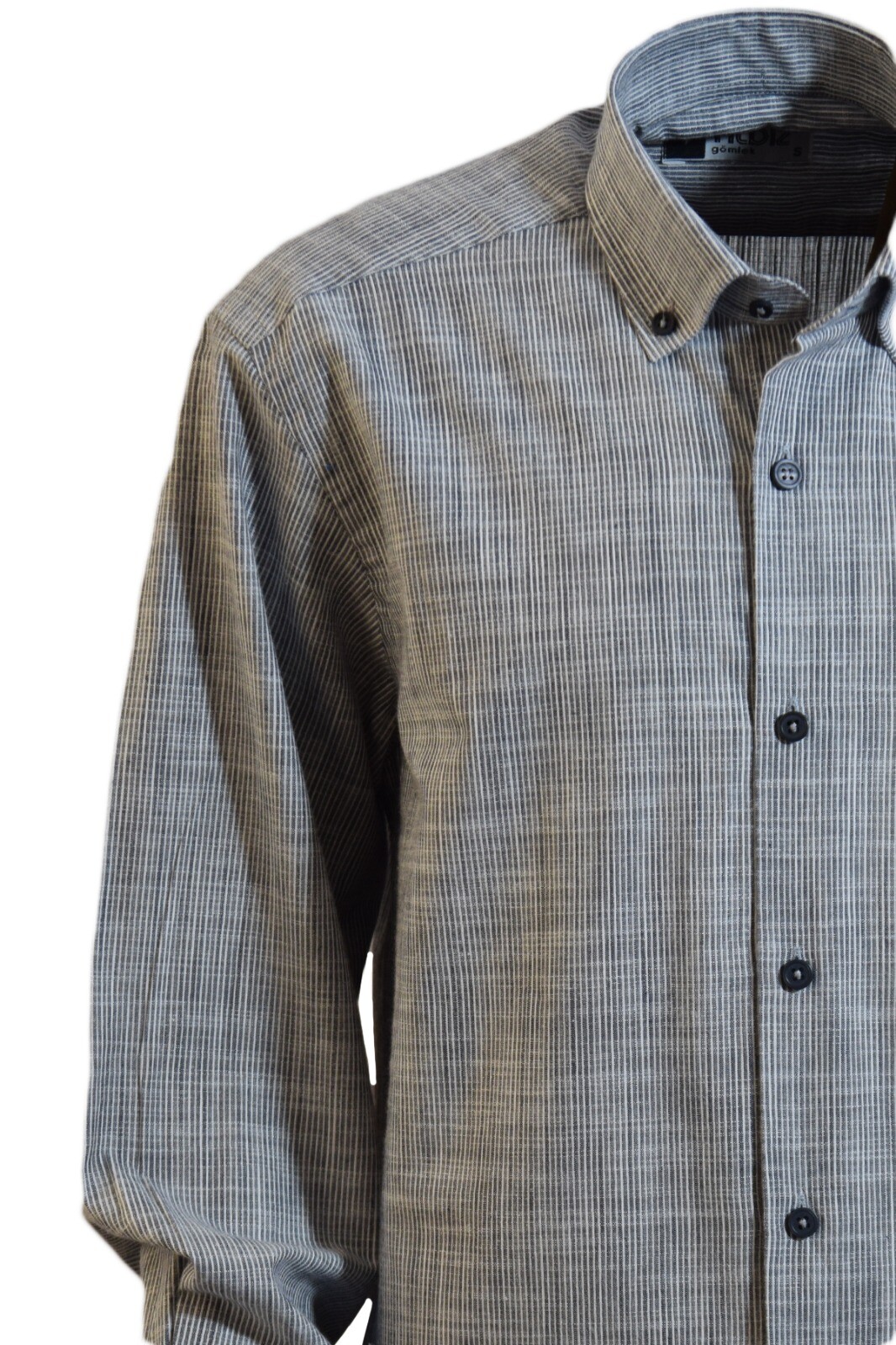 White on Grey Striped Buttoned Collar One Pocket Classic Cut Cotton Seasonal Long Sleeve Men's Shirt