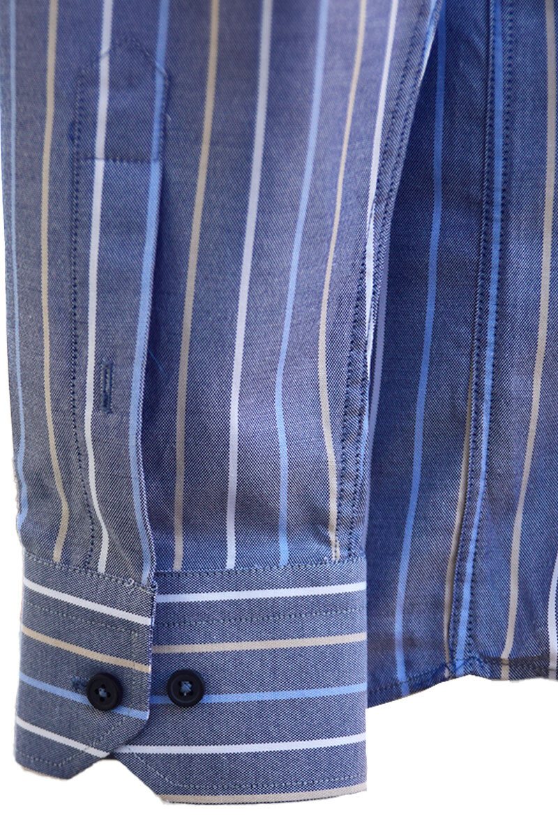 Light Blue Cream Yellow Striped Single Pocket Buttoned Collar Classic Cut Cotton Men's Shirt