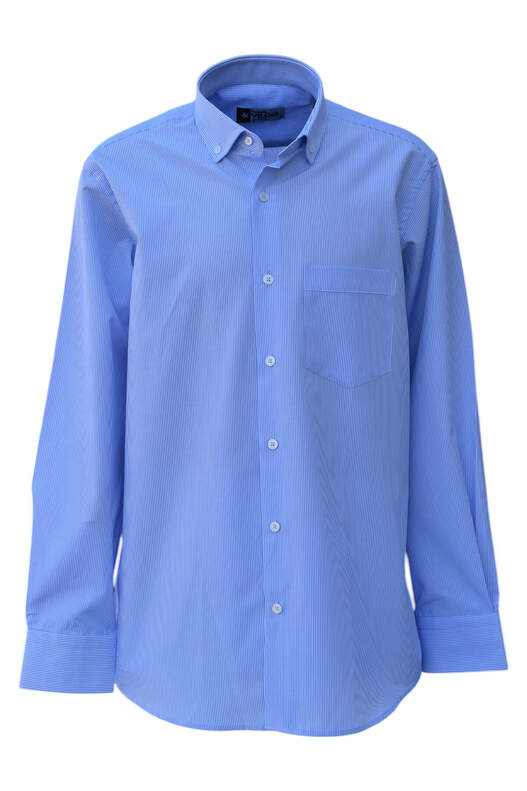 Beyaz Üzeri Mavi Çizgili Düğmeli Yaka Tek Cepli Klasik Kesim Pamuklu Uzun Kol Erkek Gömlek