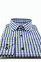 White Ground Navy Blue Checked Single Pocket Buttoned Collar Long Sleeve Classic Cut Men's Shirt