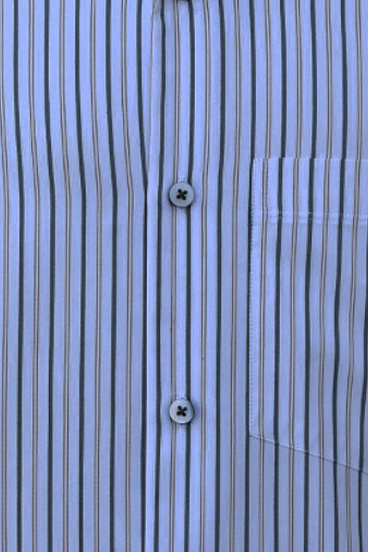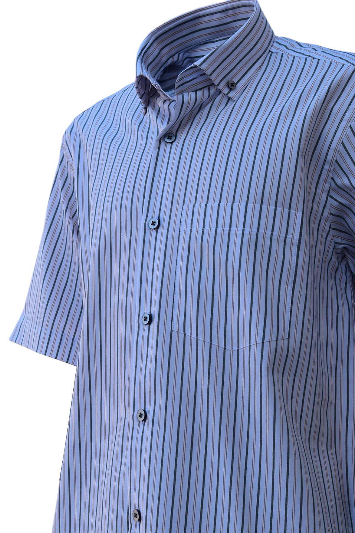 Beyaz Üzeri Haki Kiremit Çizgili Düğmeli Yaka Tek Cepli Klasik Kesim Pamuklu Kısa Kol Erkek Gömlek