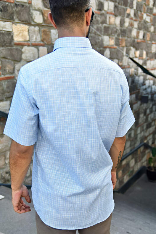 Yıldız Blue White Checked Short Sleeve Men's Shirt