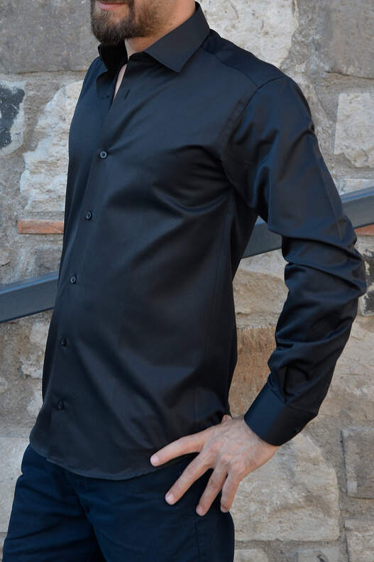 Black Cotton Satin Slim Fit Men's Shirt