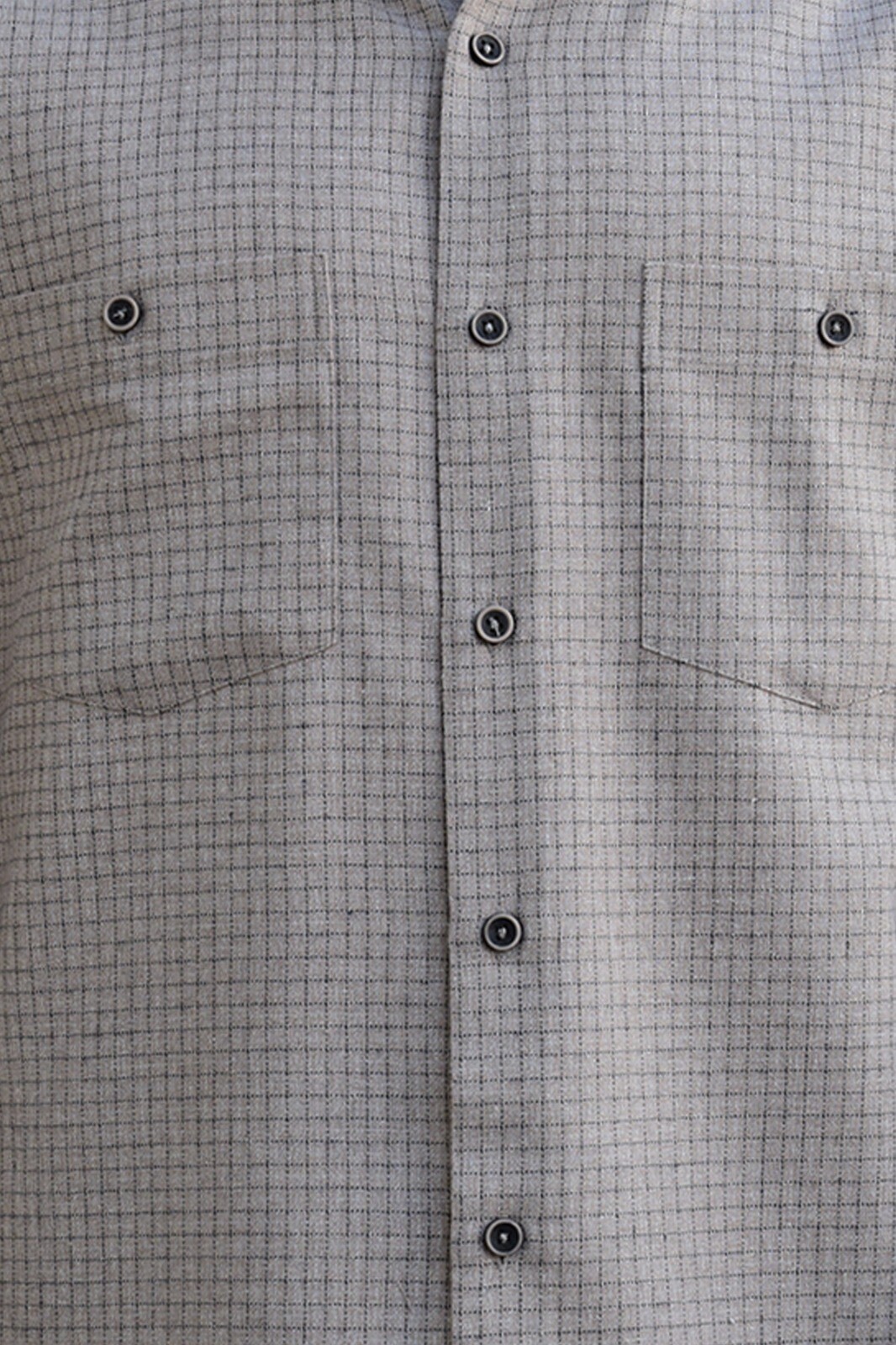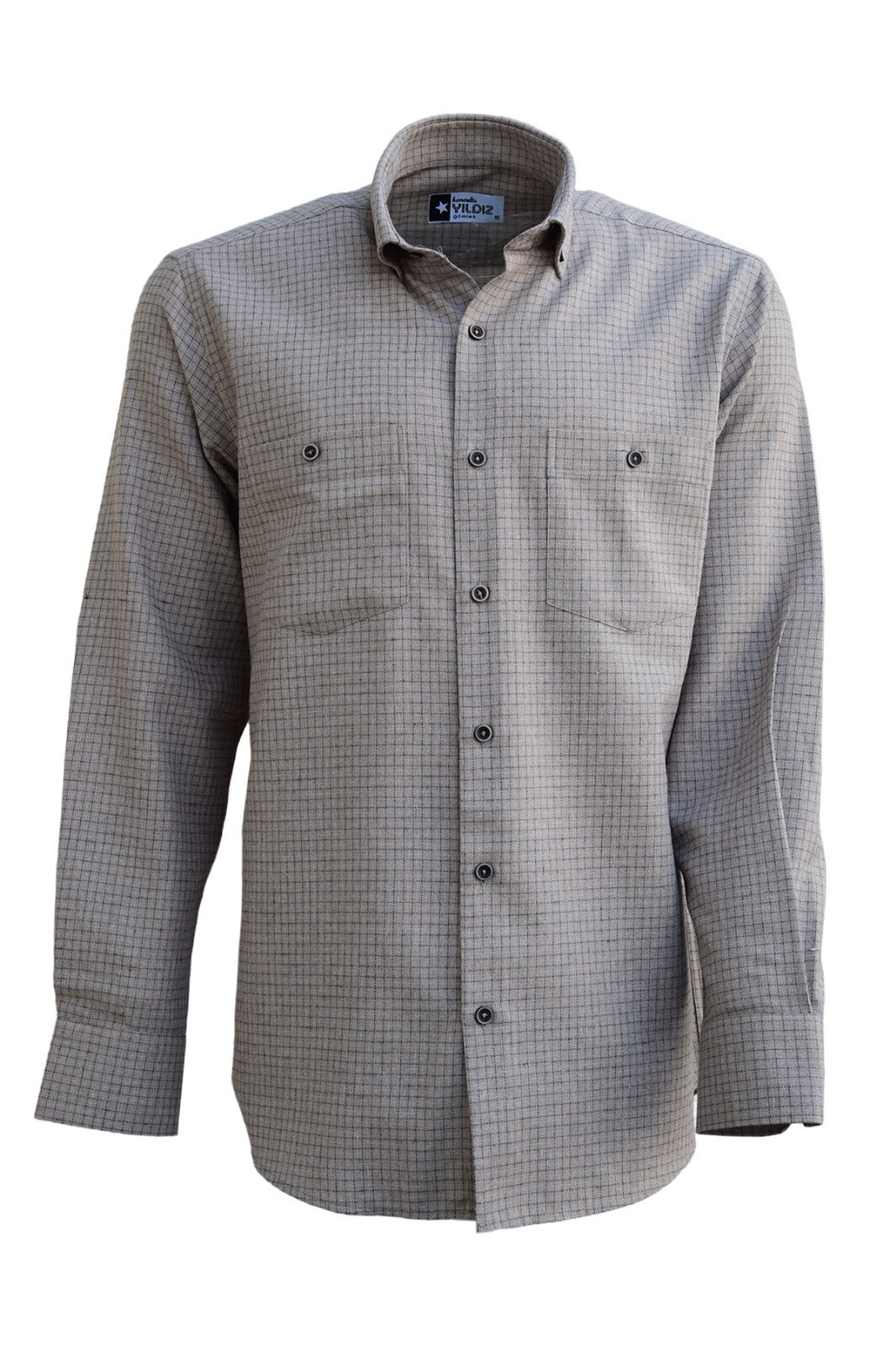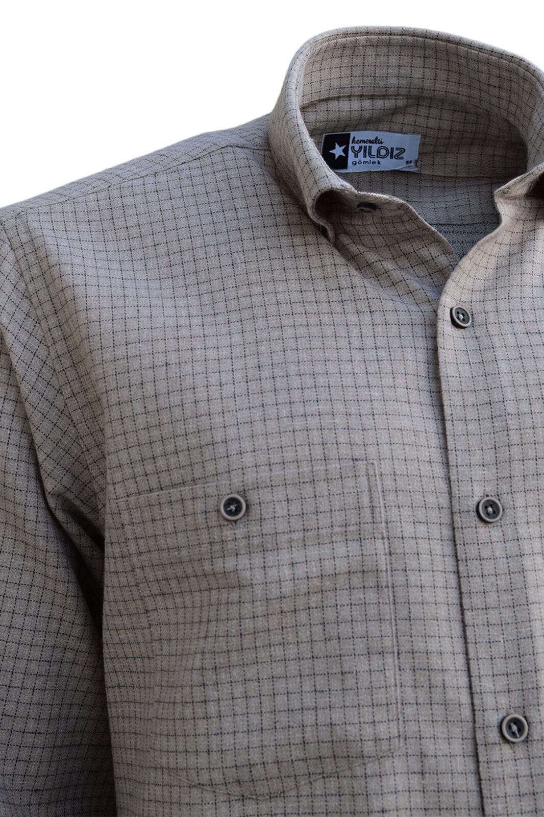Bej Siyah Pötikare Desen Düğmeli Yaka Çift Cepli Klasik Kesim Kışlık Pamuklu Erkek Gömlek