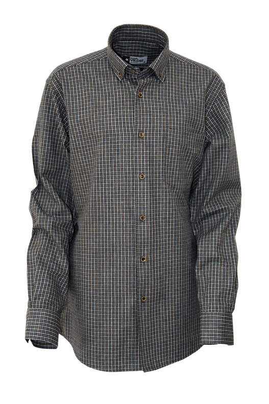 Black Coffee Cream Check Buttoned Collar One Pocket Classic Cut Winter Cotton Men's Shirt