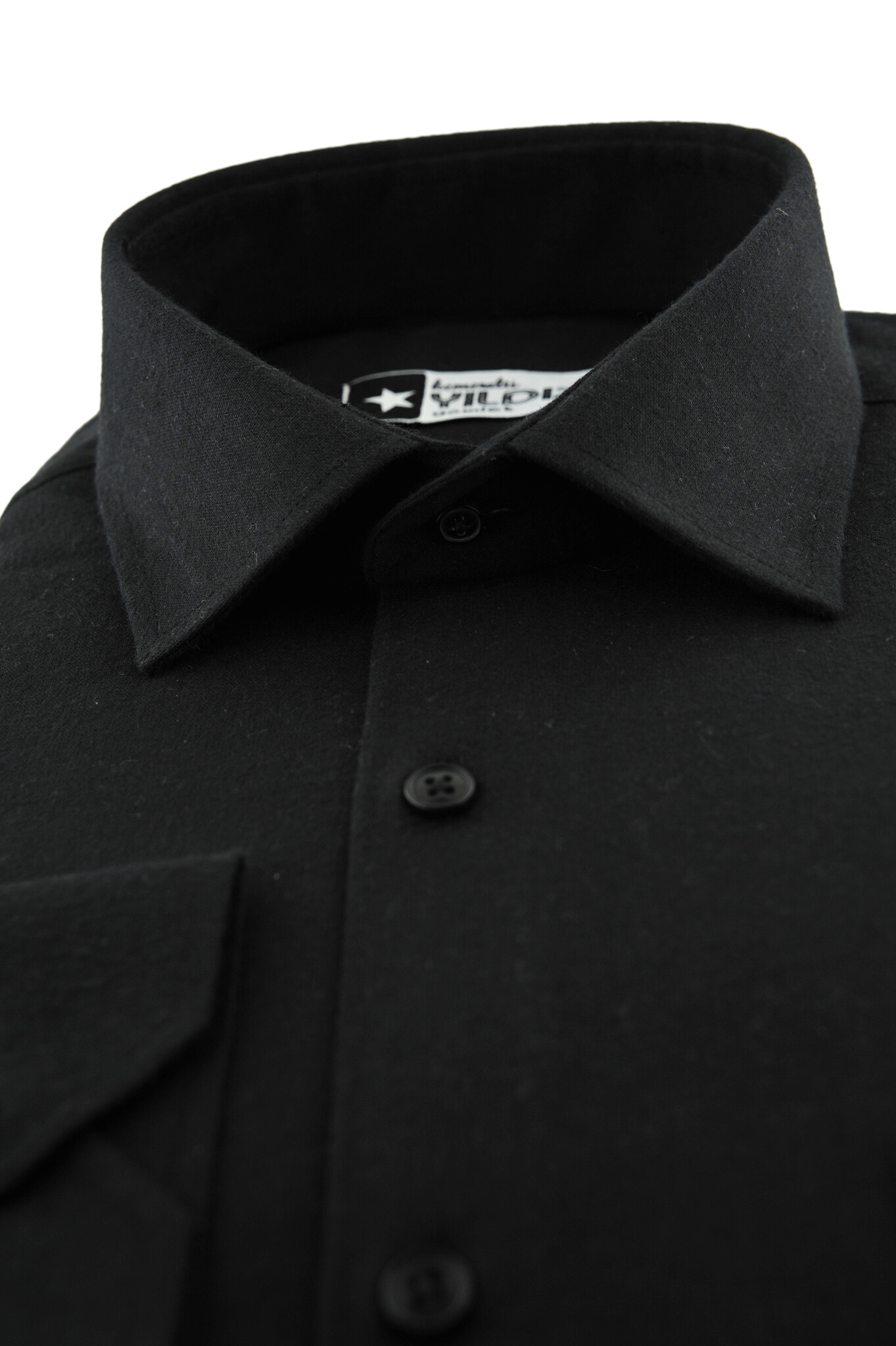Black One Pocket Unbuttoned Collar Classic Cut Winter Cotton Men's Shirt