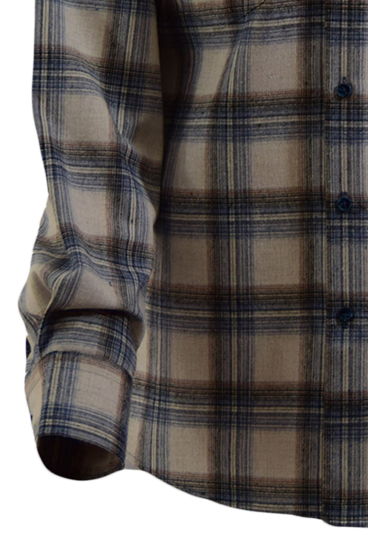 Cream Blue Navy Blue Brown Plaid Pattern Buttoned Collar Double Pocket Classic Cut Winter Cotton Men's Shirt