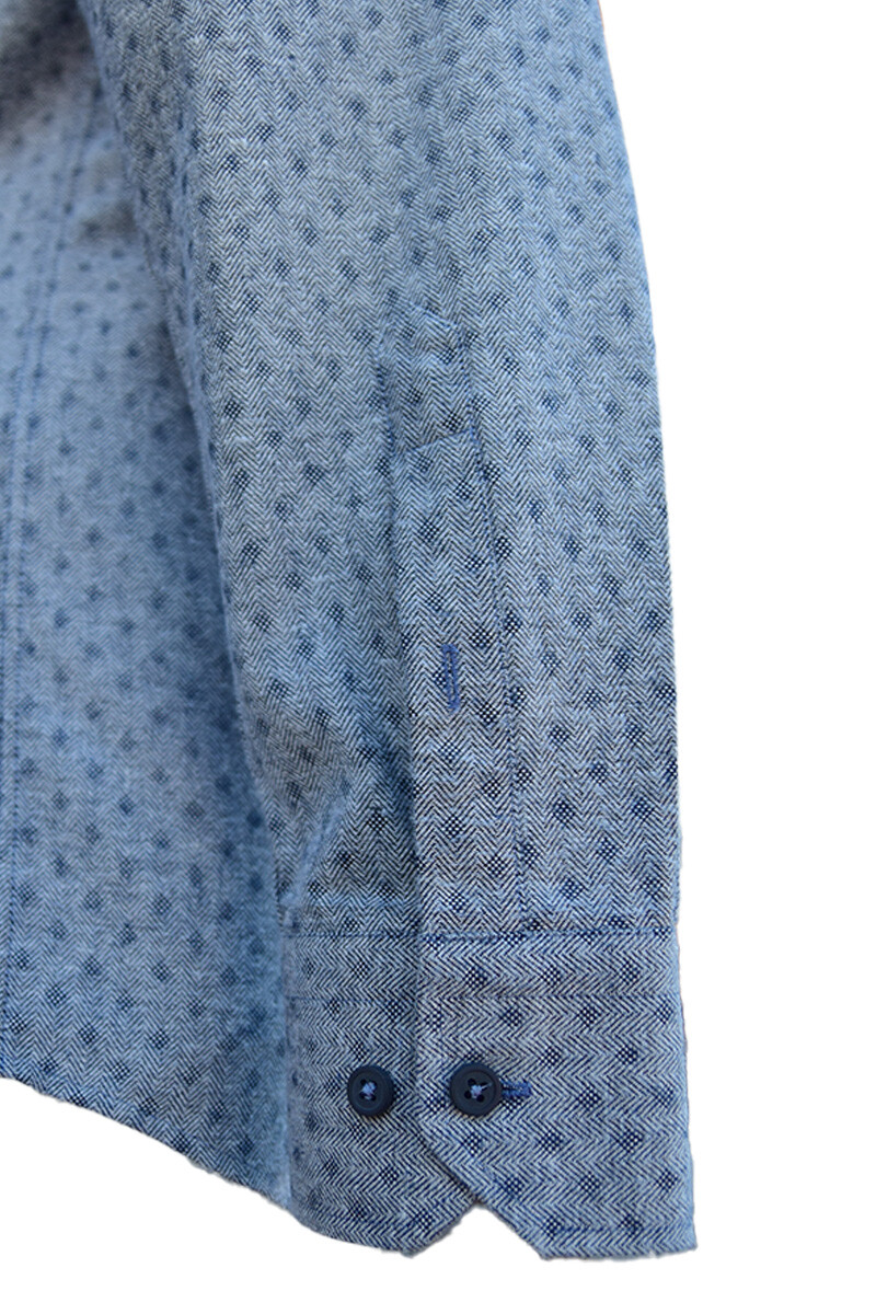 Gray-Blue Self-Patterned Double Pocket Button-down Collar Classic Cut Winter Cotton Men's Shirt