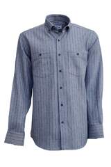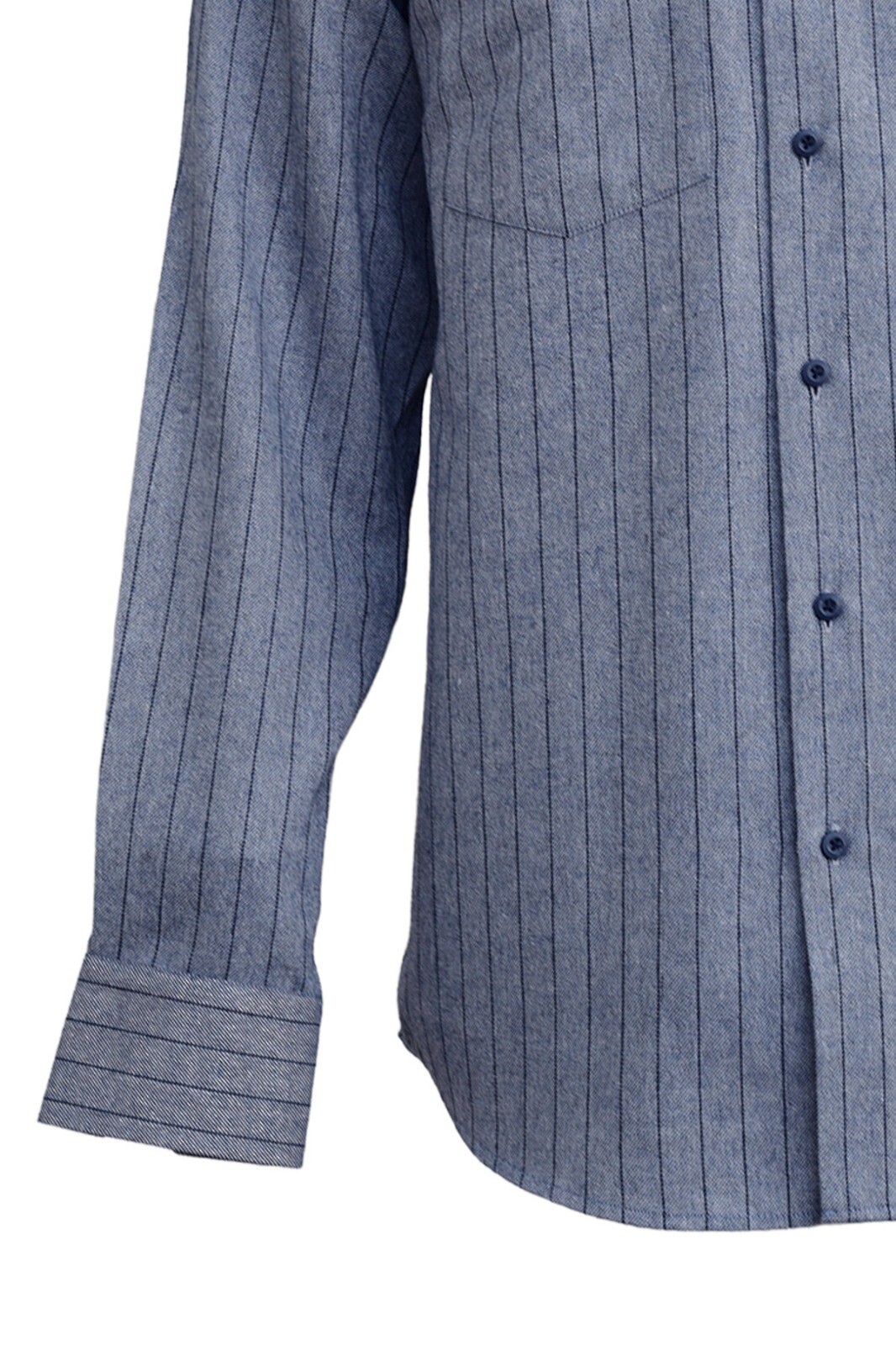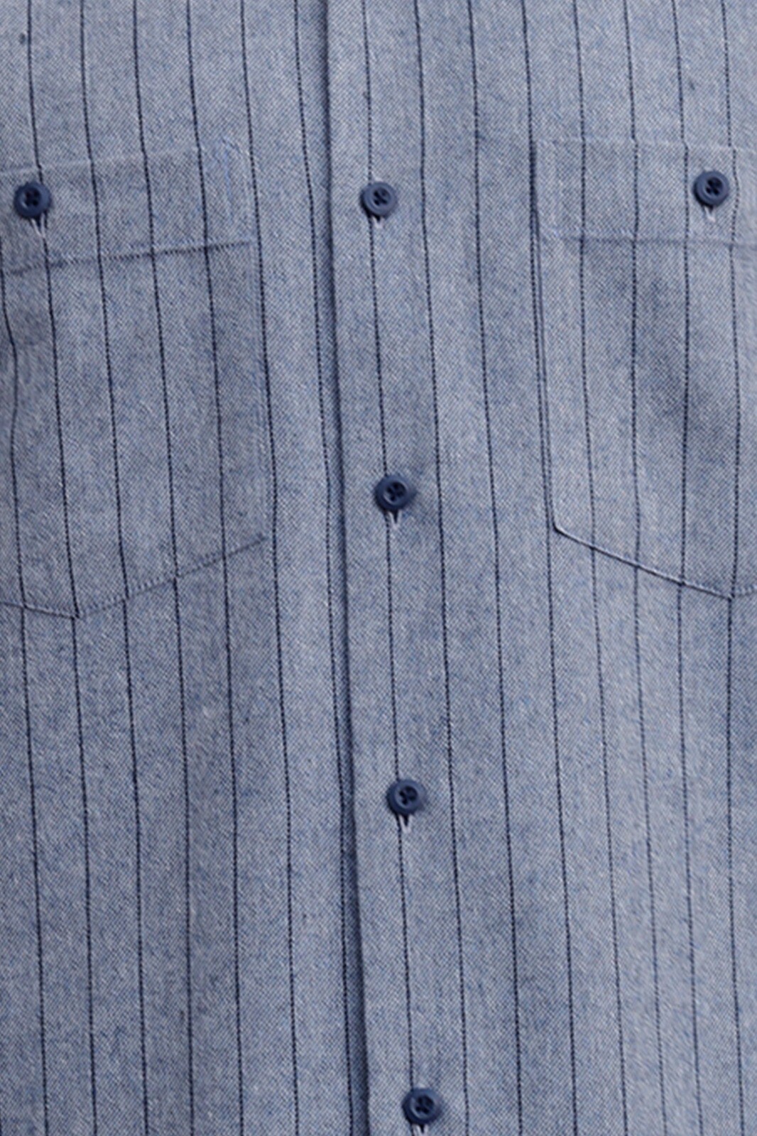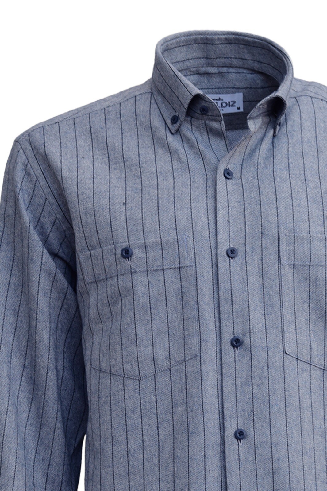 Gri-Mavi Çizgili Düğmeli Yaka Çift Cepli Klasik Kesim Kışlık Pamuklu Erkek Gömlek