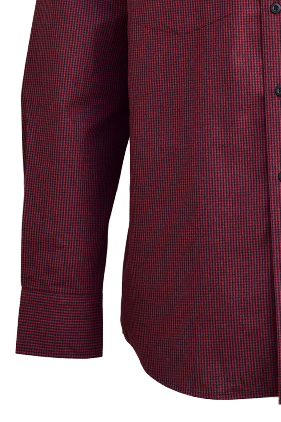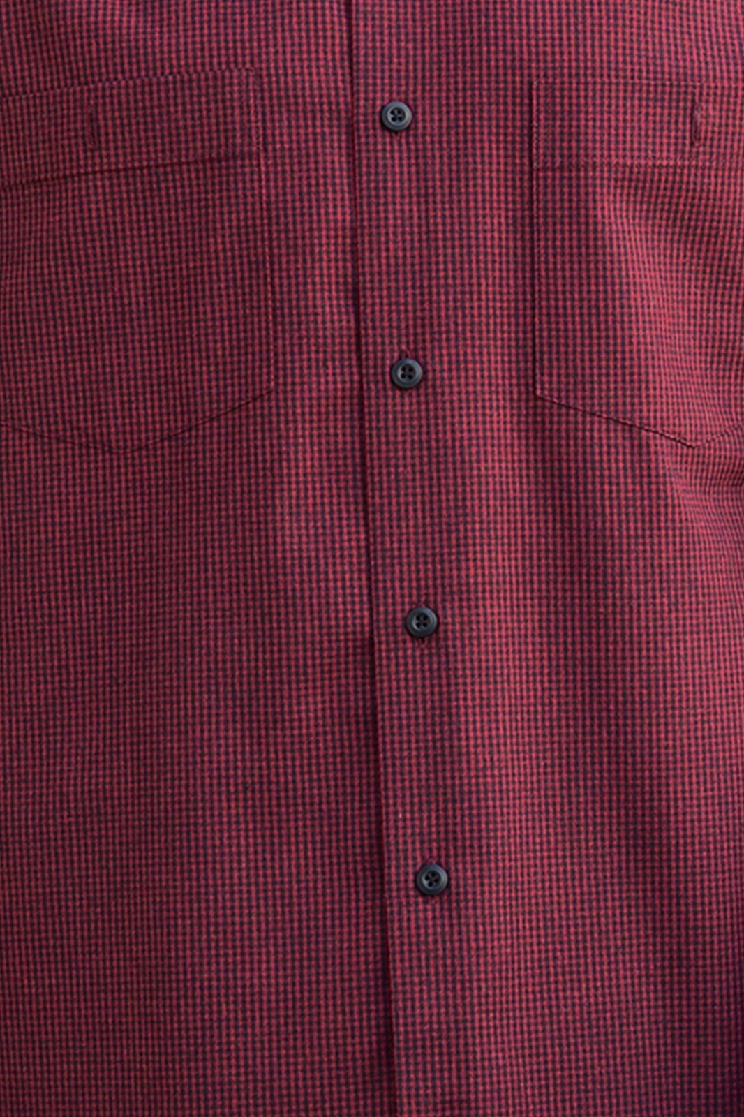Kırmızı Siyah Pötikare Desen Düğmeli Yaka Çift Cepli Klasik Kesim Kışlık Pamuklu Erkek Gömlek
