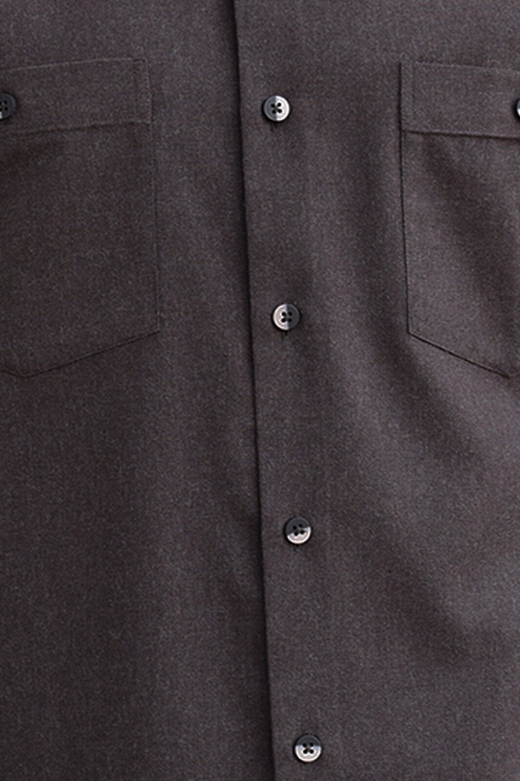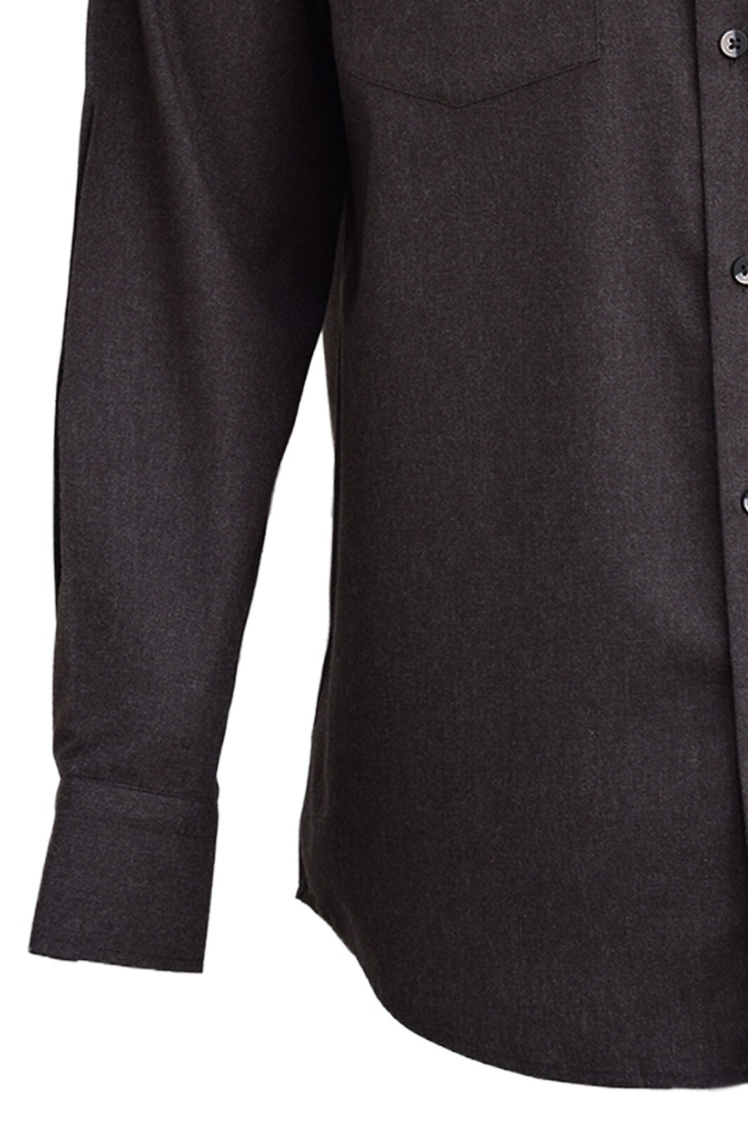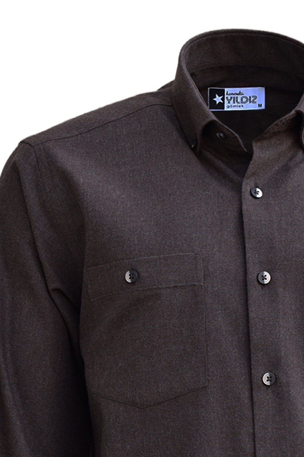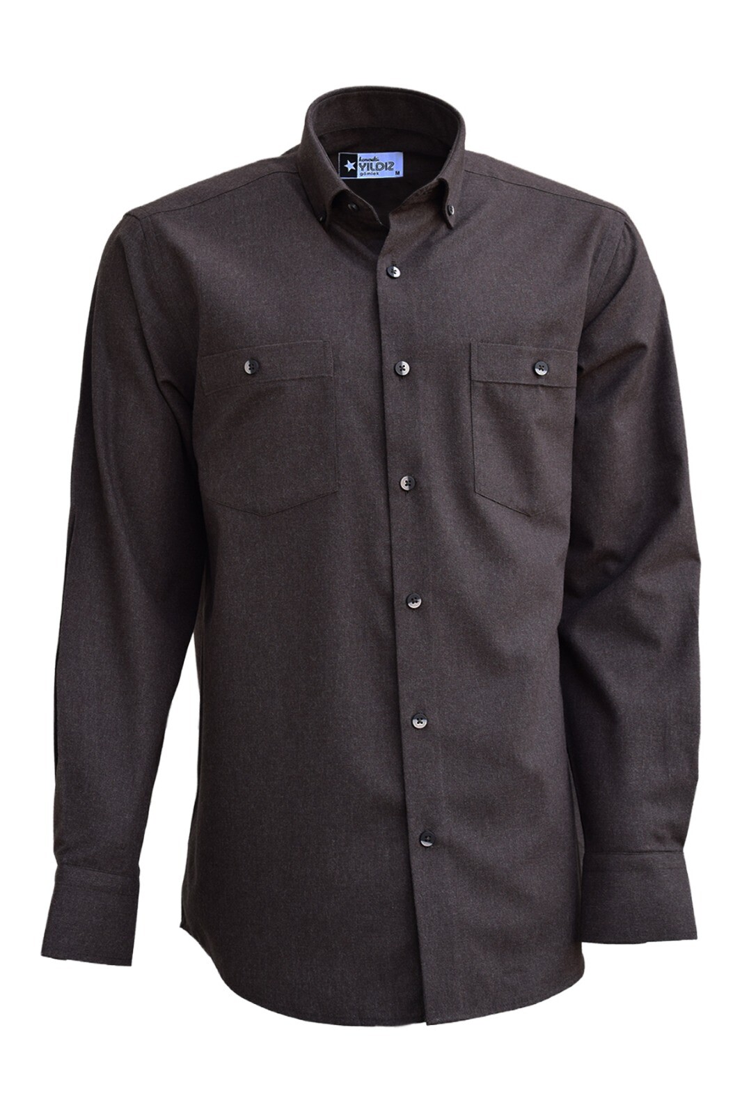 Koyu Kahverengi Düğmeli Yaka Çift Cepli Klasik Kesim Kışlık Pamuklu Erkek Gömlek