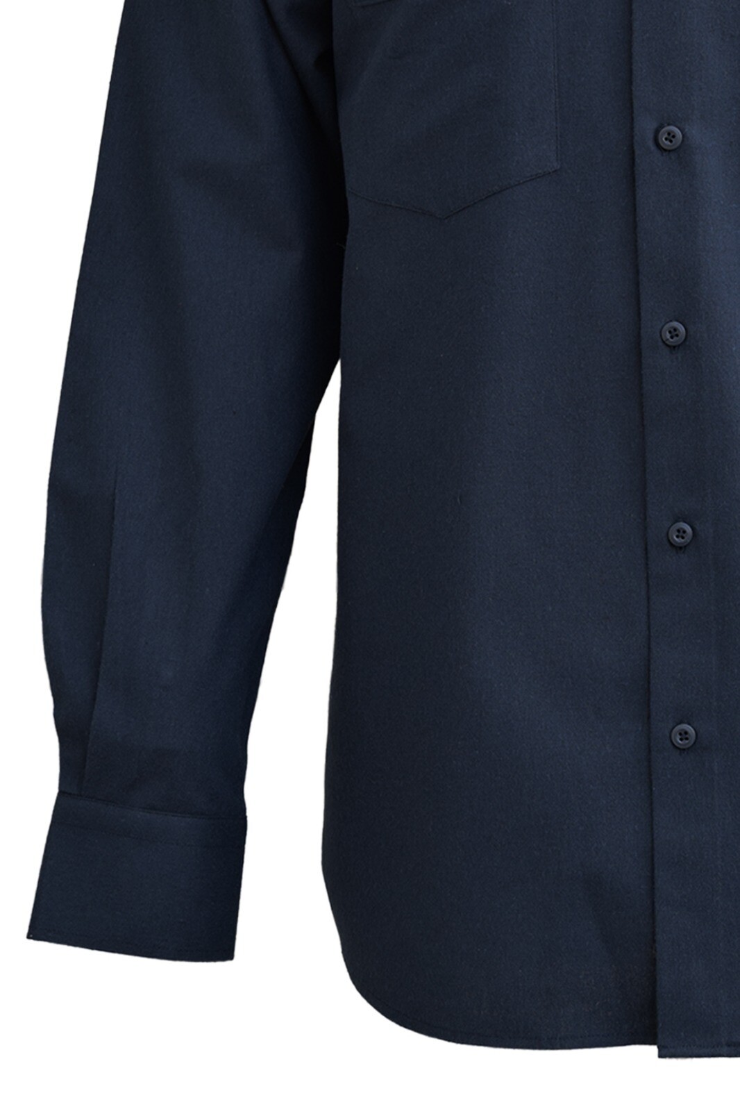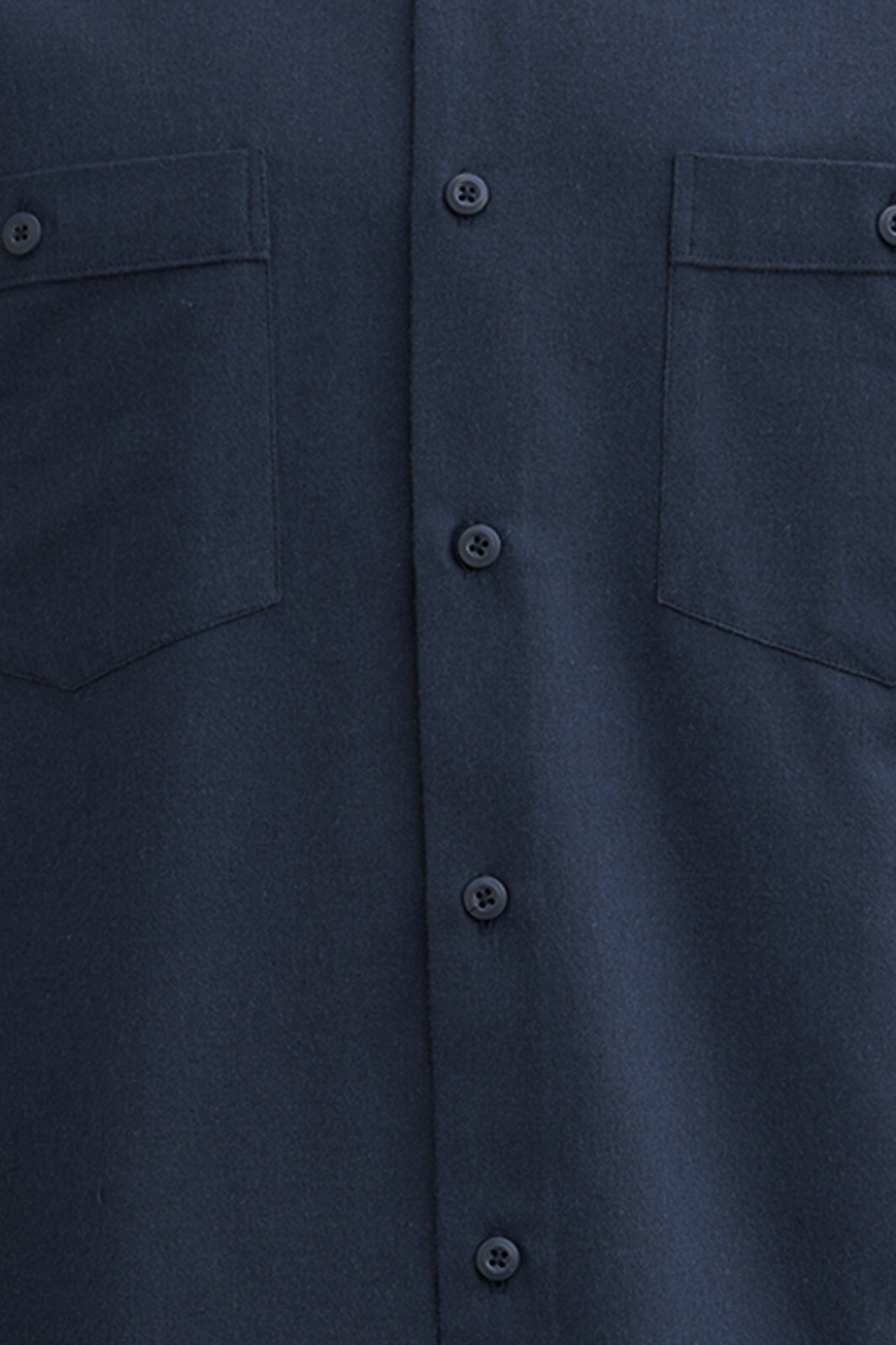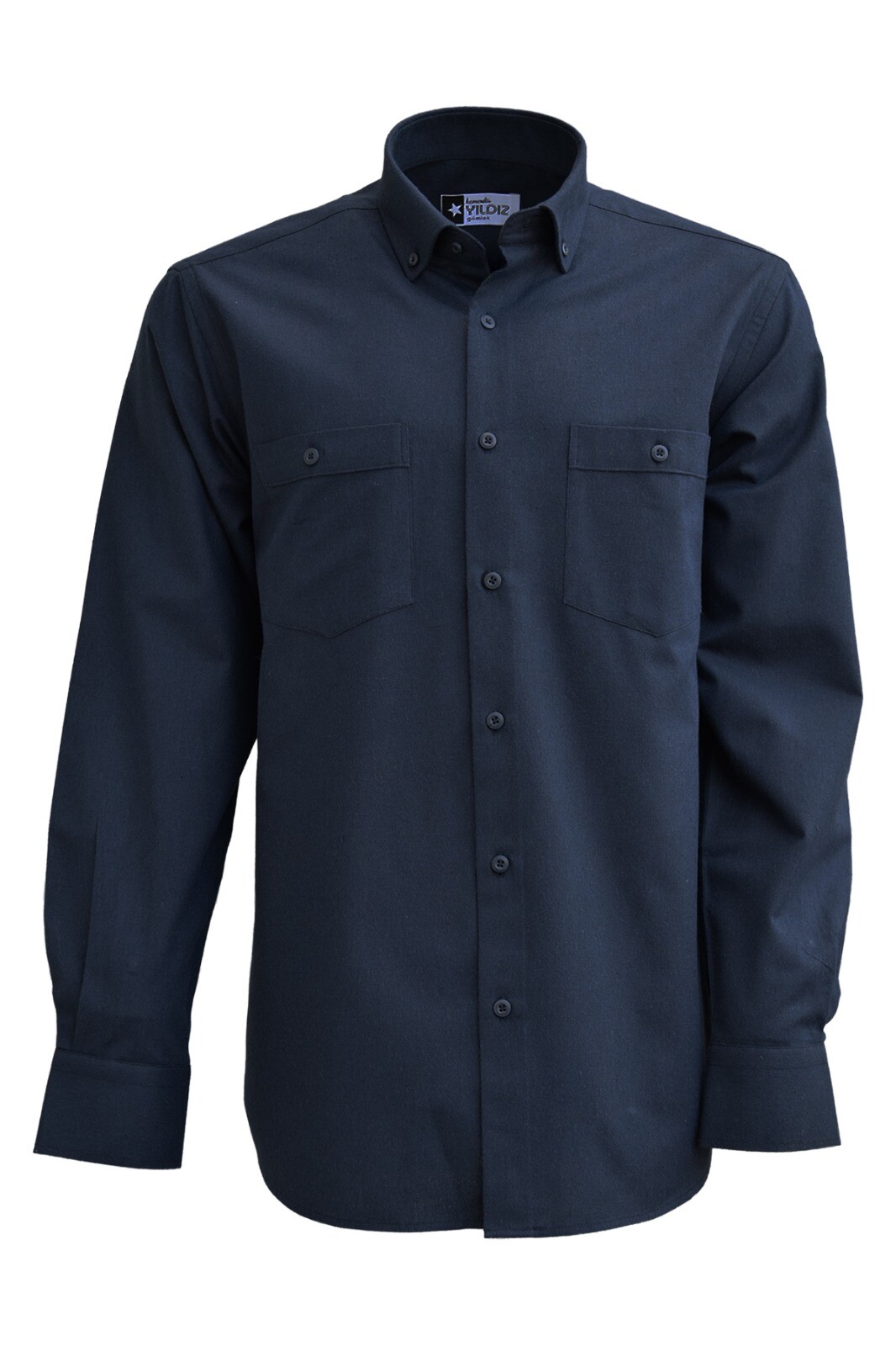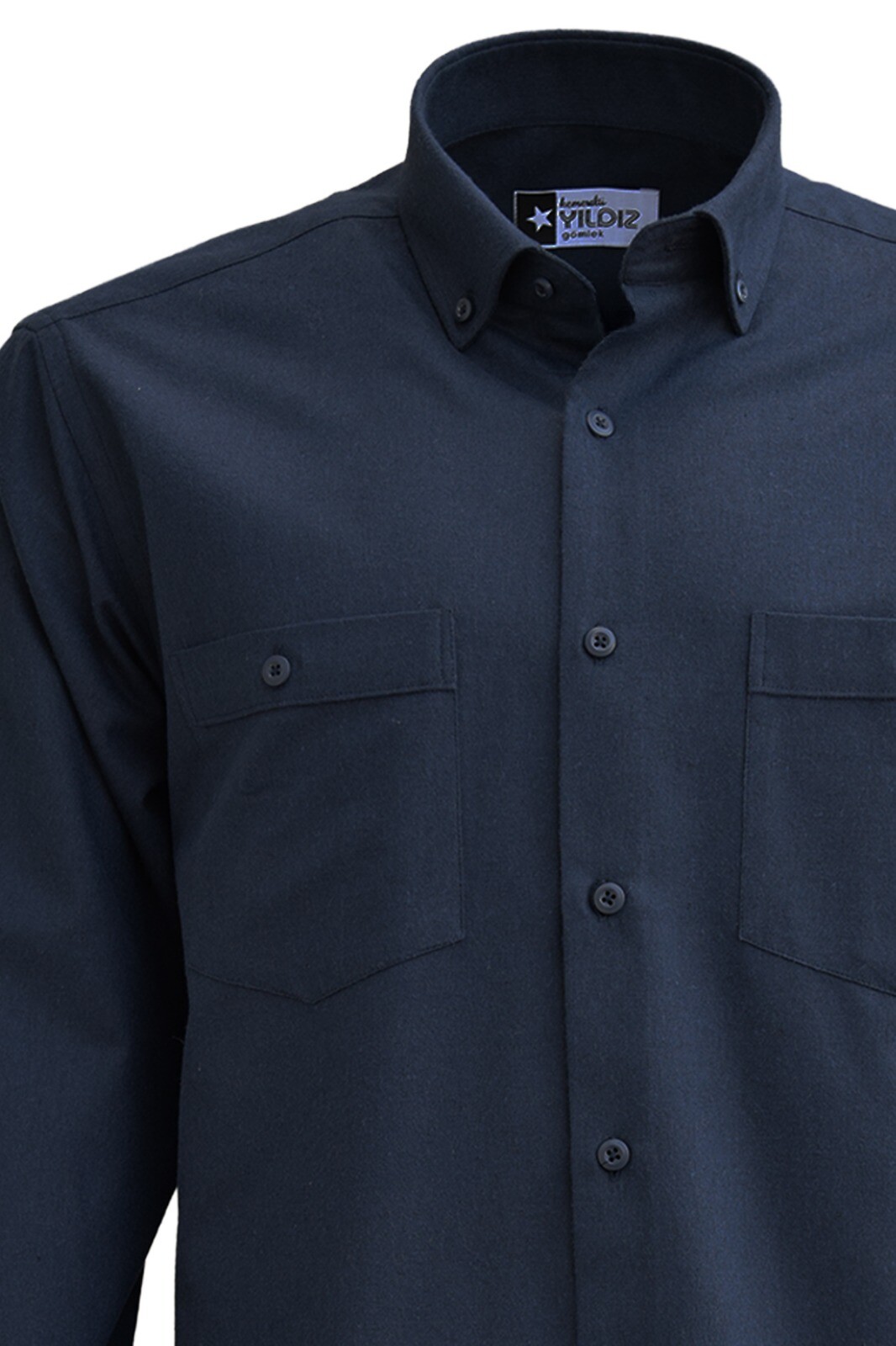 Koyu Lacivert Düğmeli Yaka Çift Cepli Klasik Kesim Kışlık Pamuklu Erkek Gömlek
