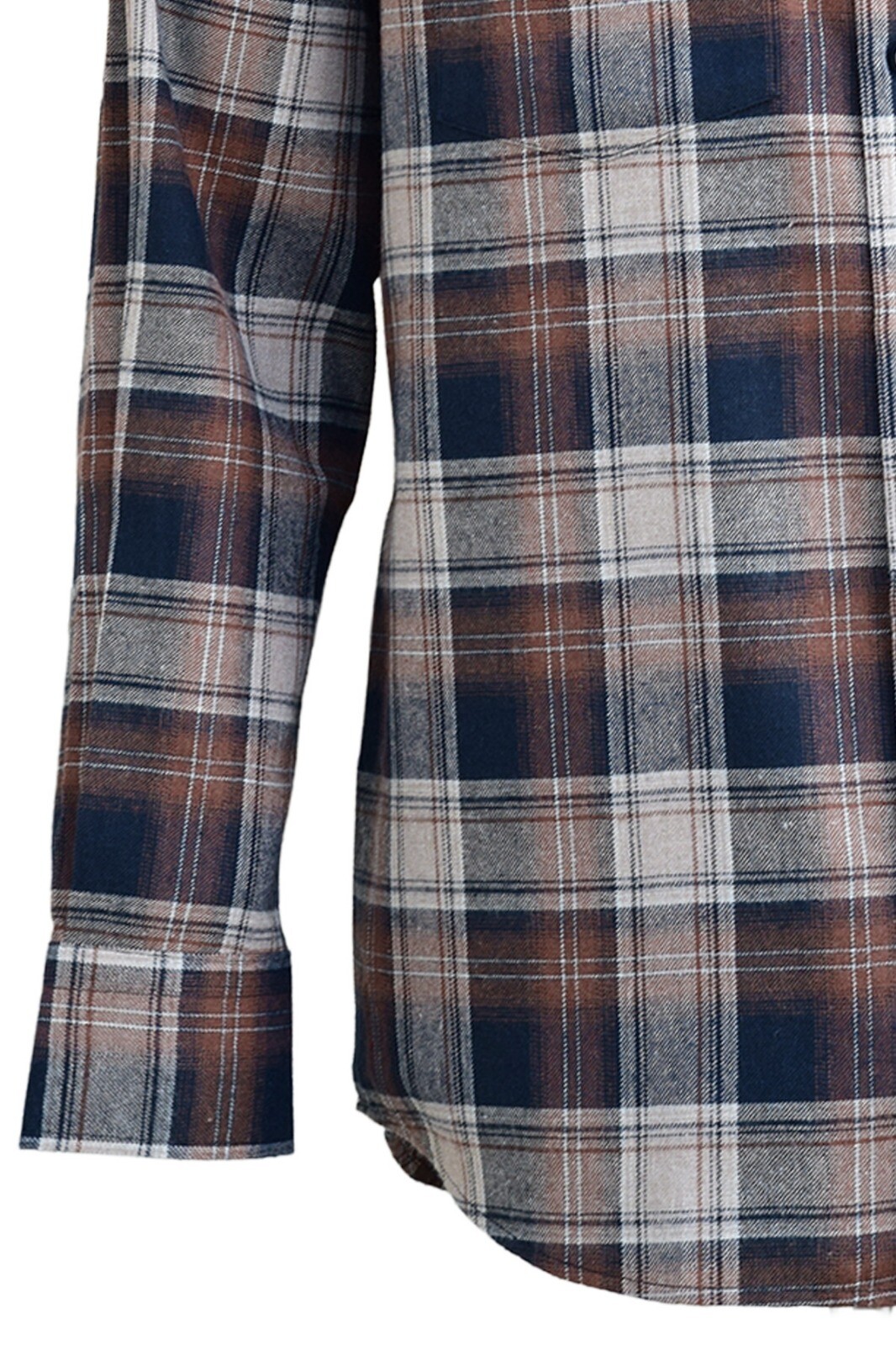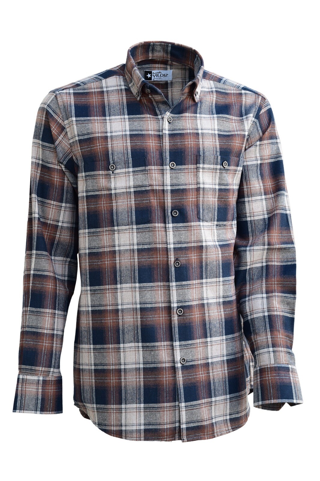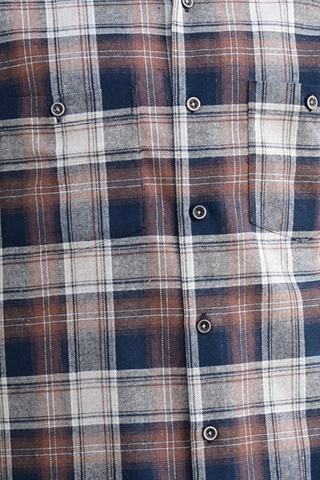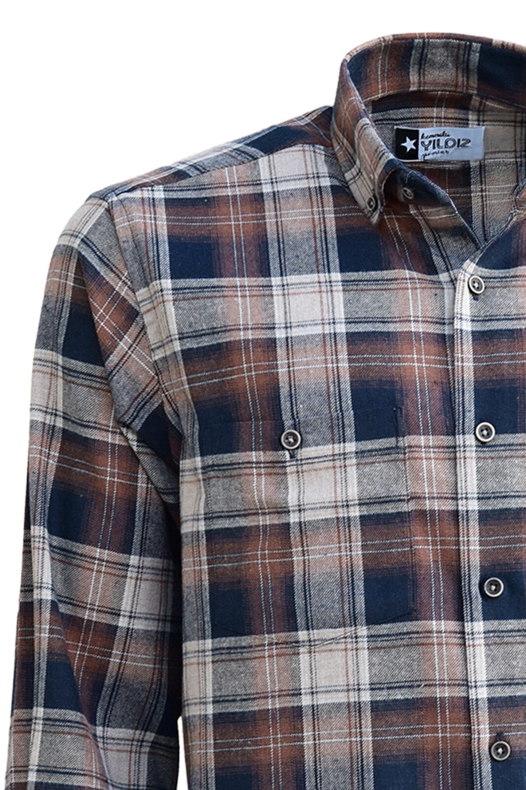 Krem Lacivert Kiremit Ekose Desen Düğmeli Yaka Çift Cepli Klasik Kesim Kışlık Pamuklu Erkek Gömlek