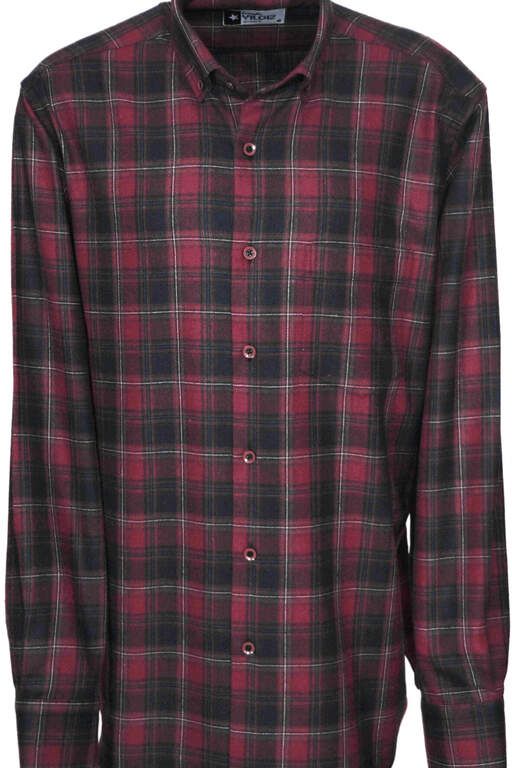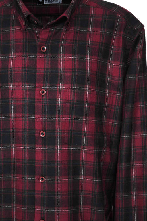 Red Navy Blue Plaid Single Pocket Buttoned Collar Classic Cut Winter Cotton Men's Shirt
