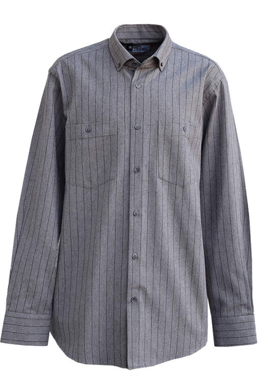 Bej Üzerine Kahverengi Çizgili Çift Cepli Düğmeli Yaka Klasik Kesim Kışlık Pamuklu Erkek Gömlek