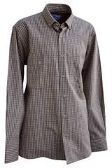Bej Siyah Kareli Çift Cepli Düğmeli Yaka Klasik Kesim Kışlık Pamuklu Erkek Gömlek