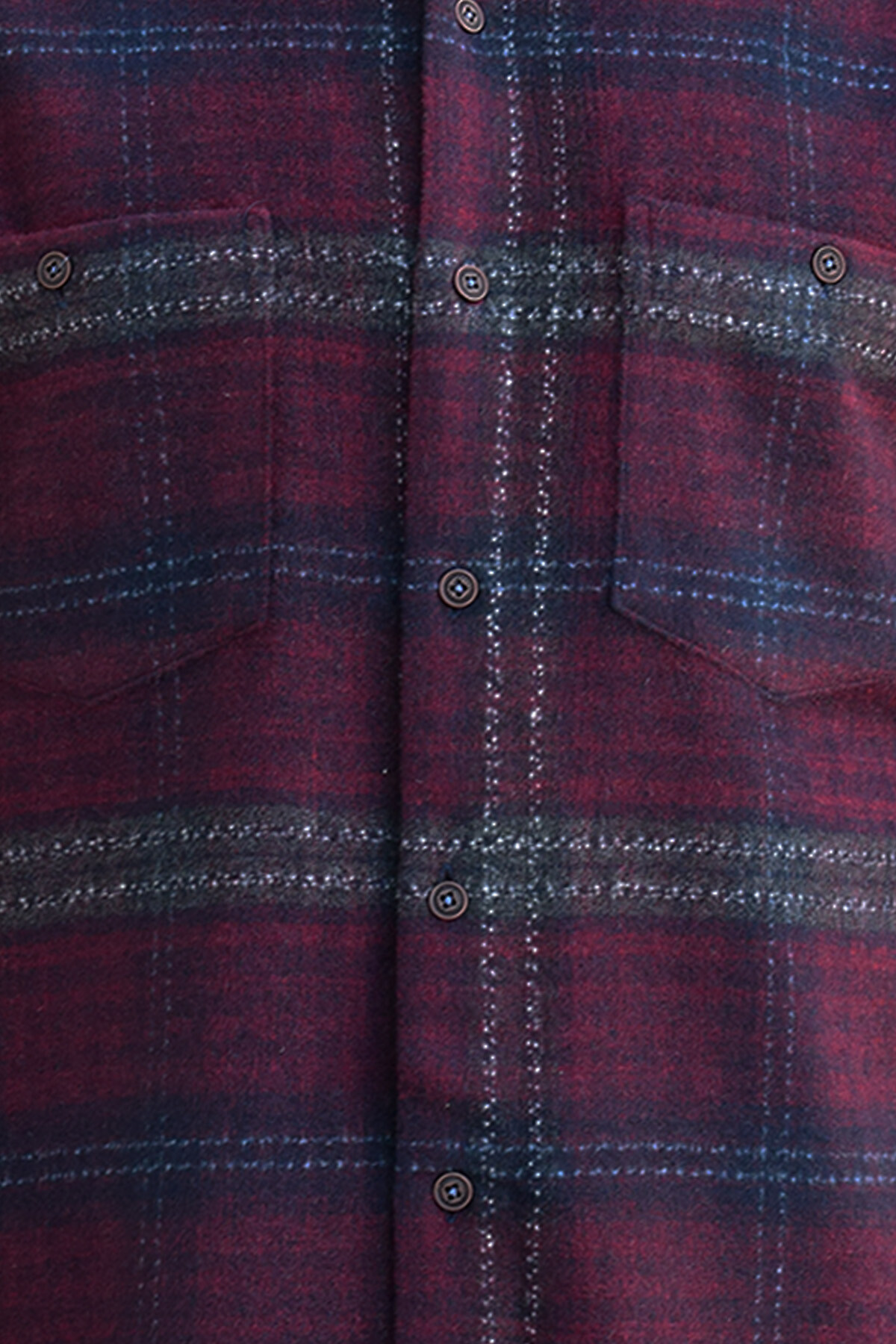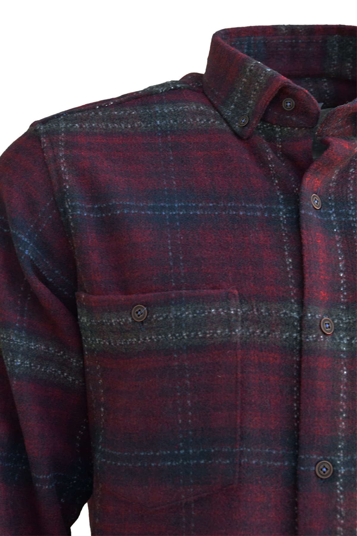Bordo Lacivert Mavi Ekose Desen Düğmeli Yaka Çift Cepli Klasik Kesim Oduncu Gömlek