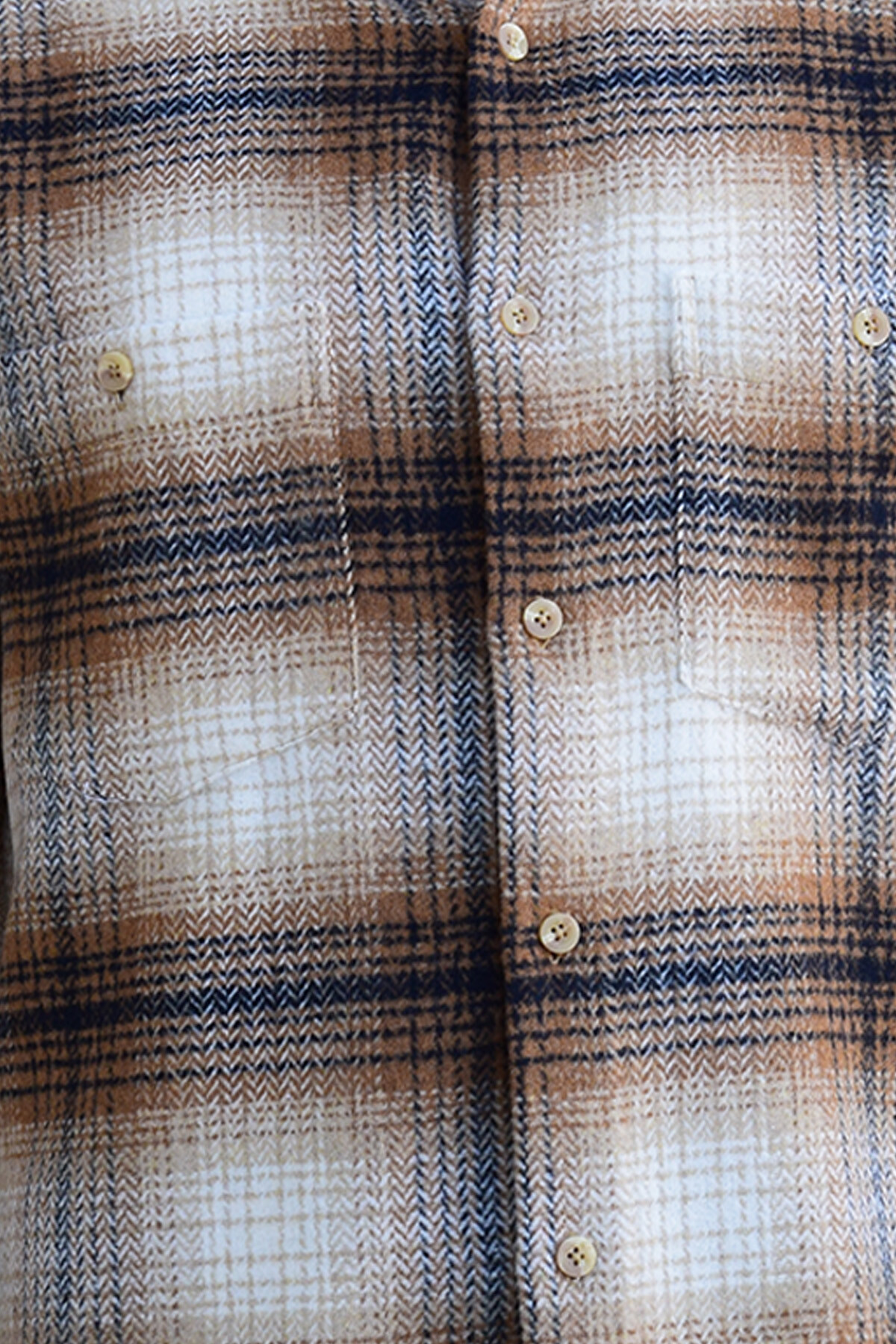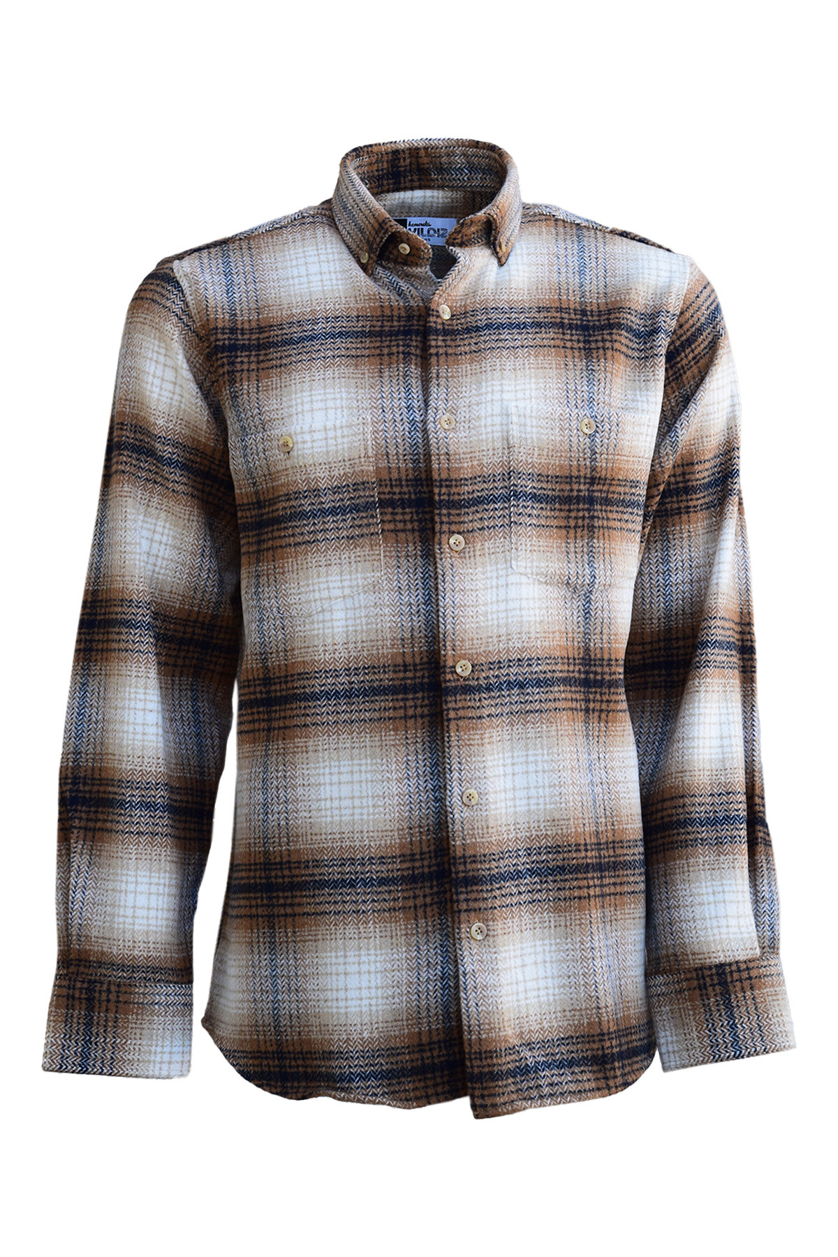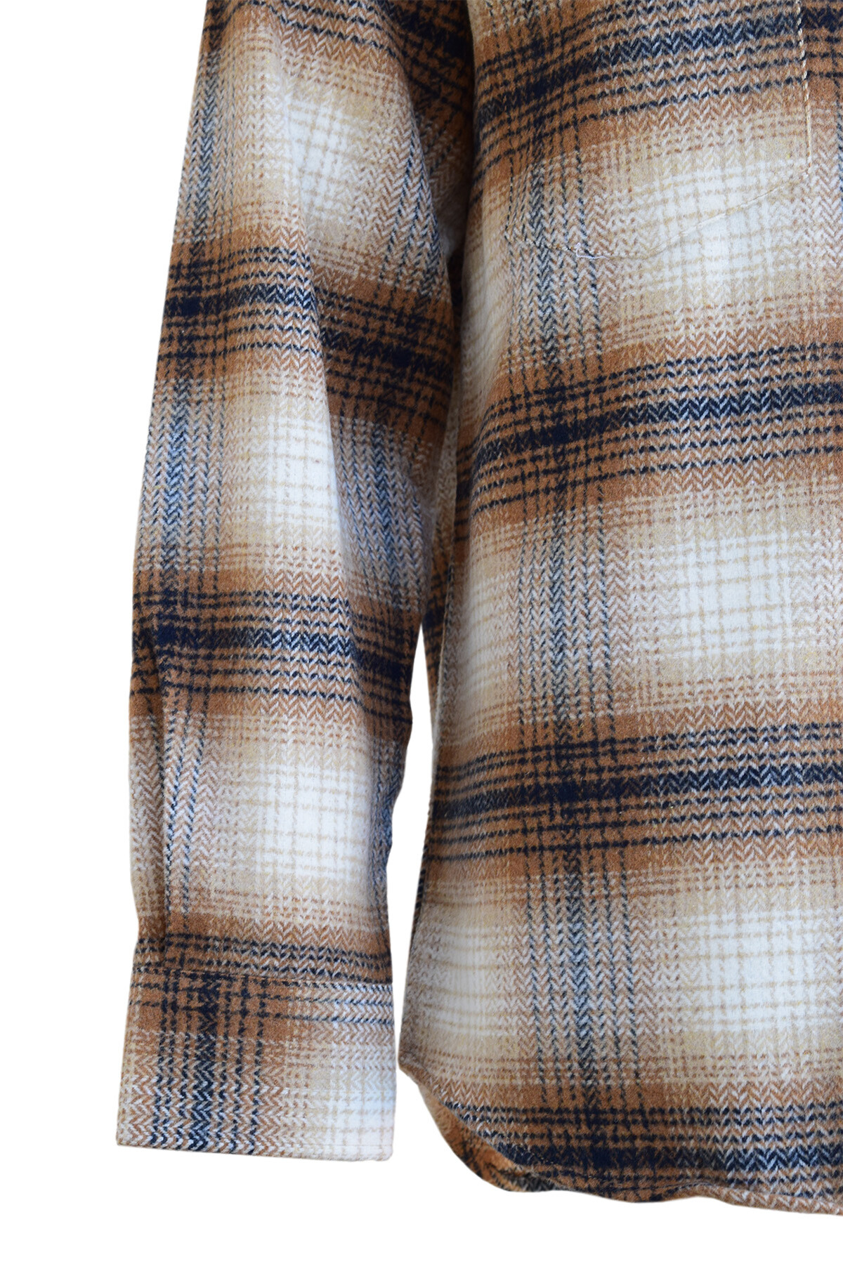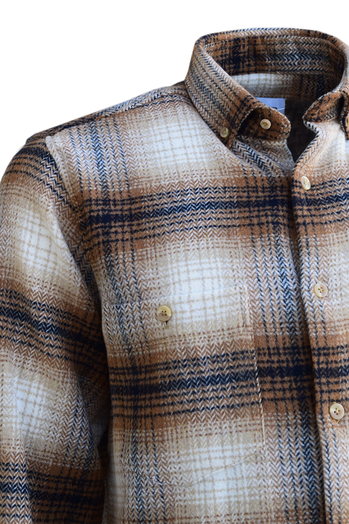 Kahve Tonları Siyah ve Krem Ekose Desen Düğmeli Yaka Çift Cepli Klasik Kesim Oduncu Gömlek