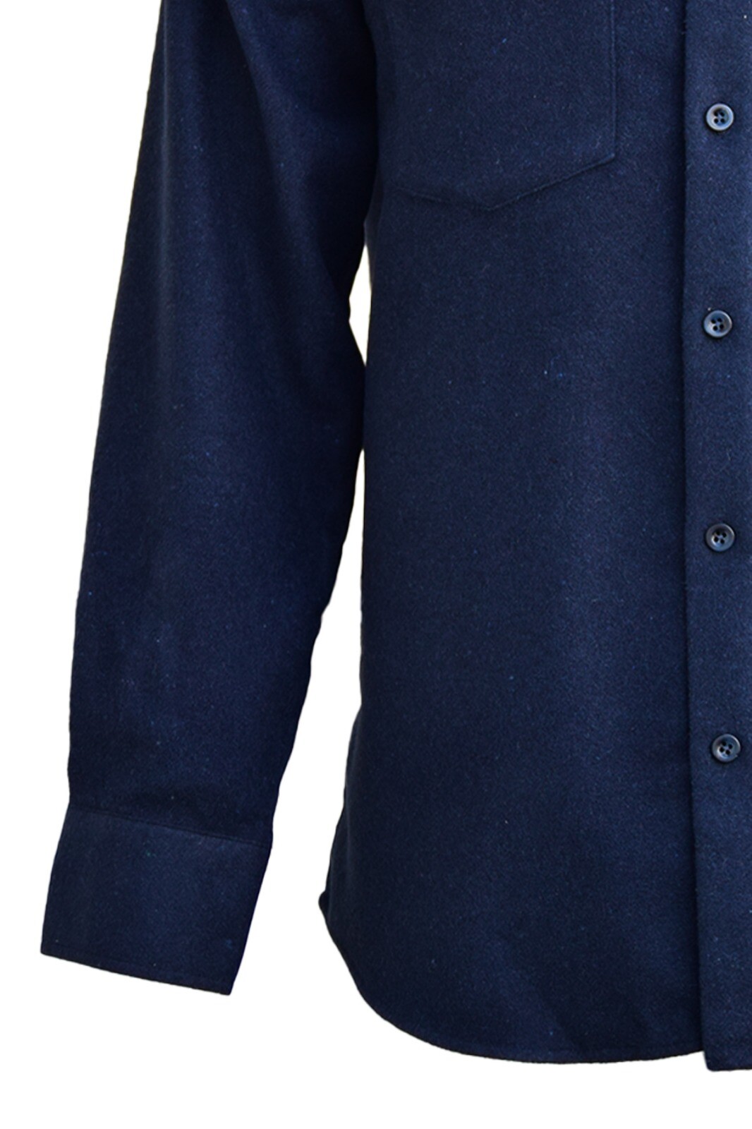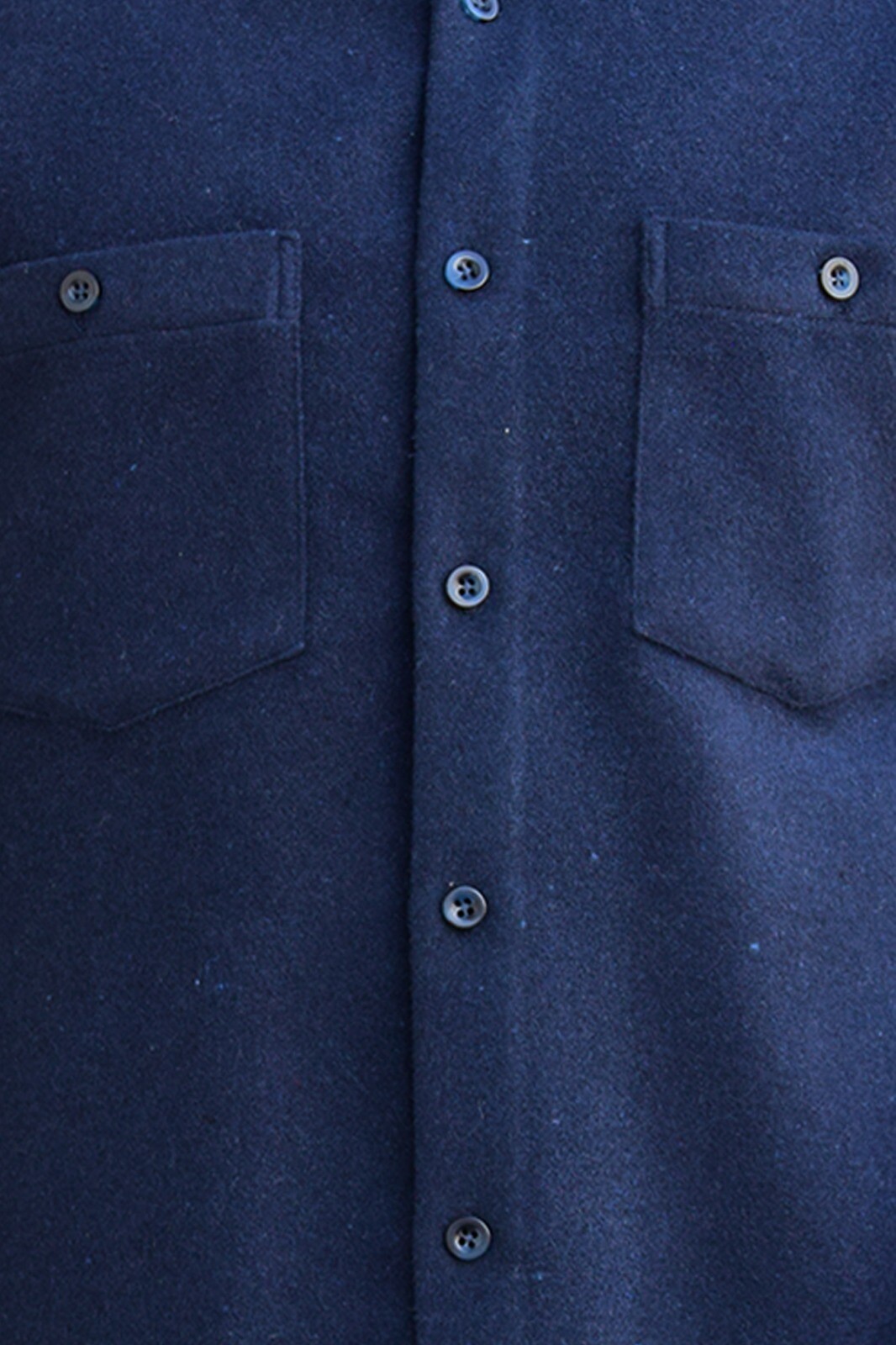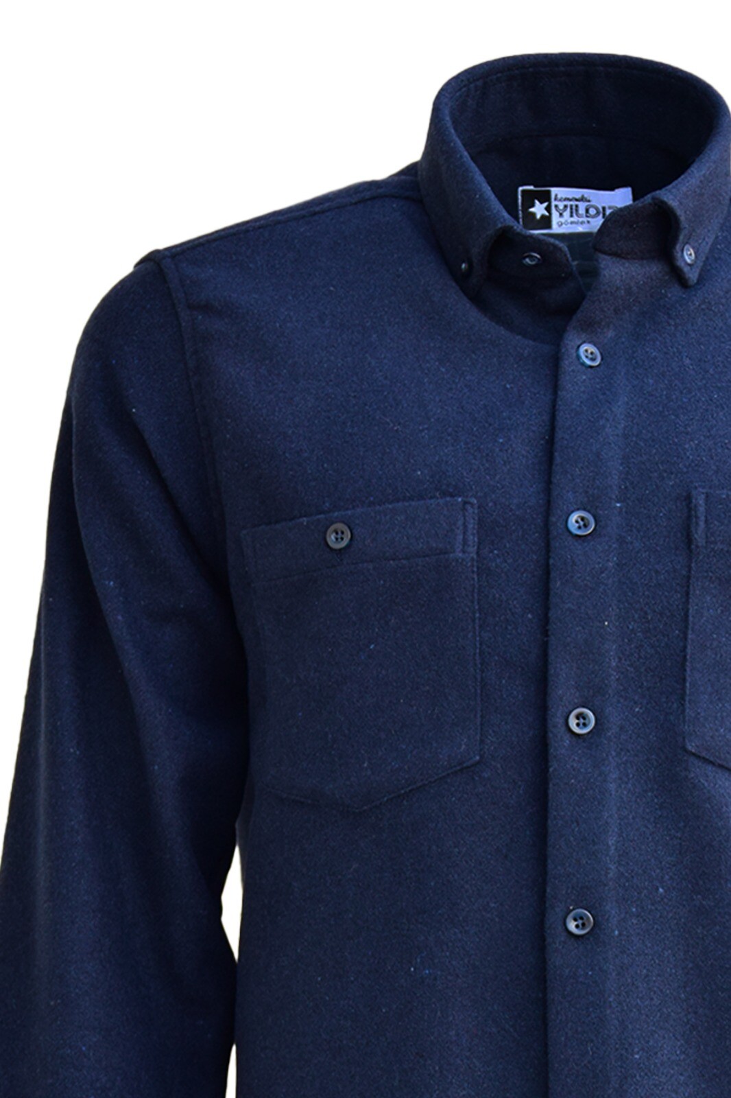 Lacivert Düz Renk Düğmeli Yaka Çift Cepli Klasik Kesim Oduncu Gömlek