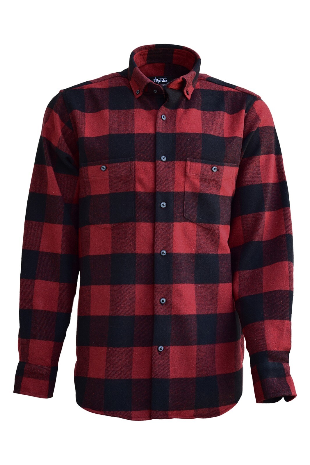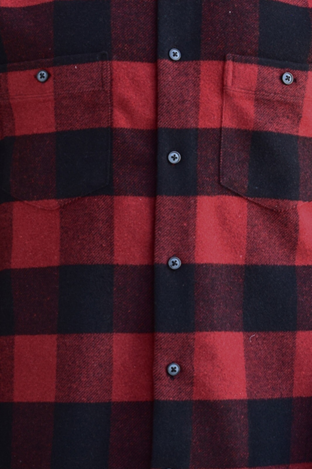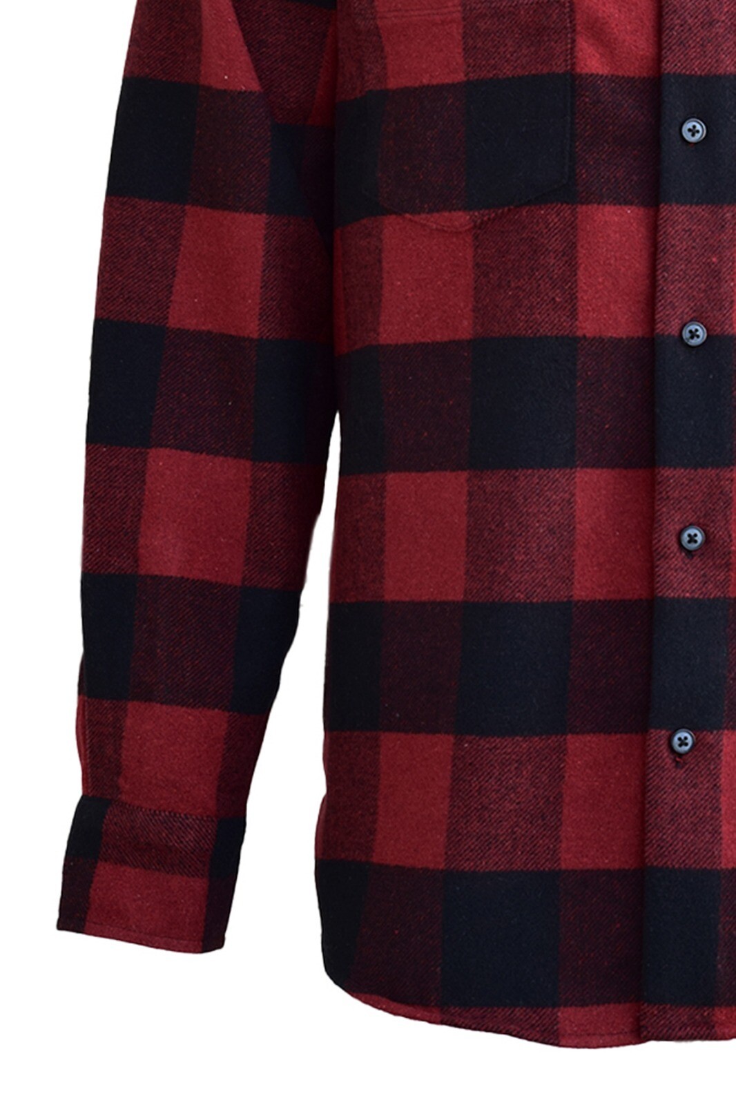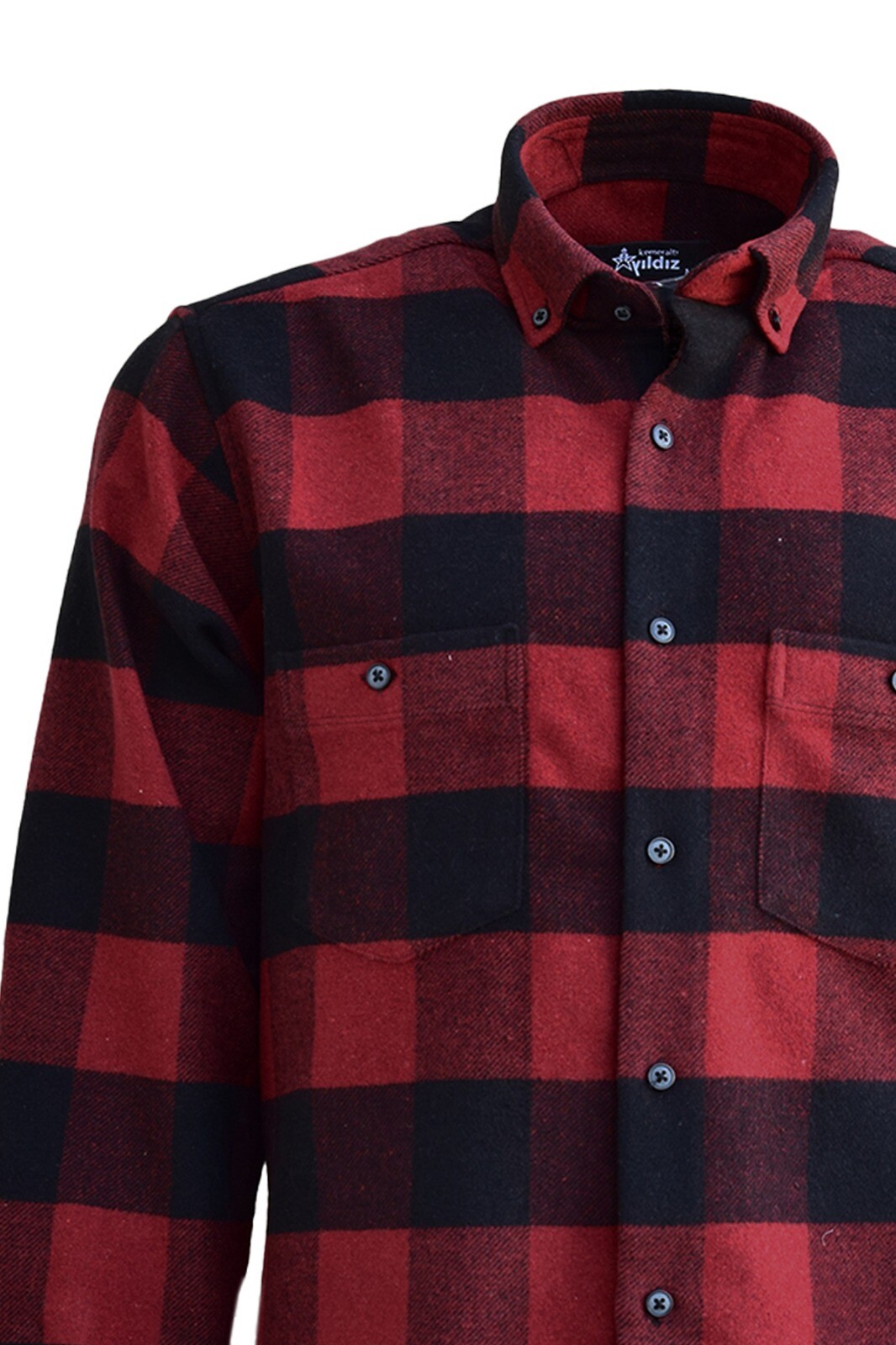 Siyah Kırmızı Kareli Düğmeli Yaka Çift Cepli Klasik Kesim Oduncu Gömlek