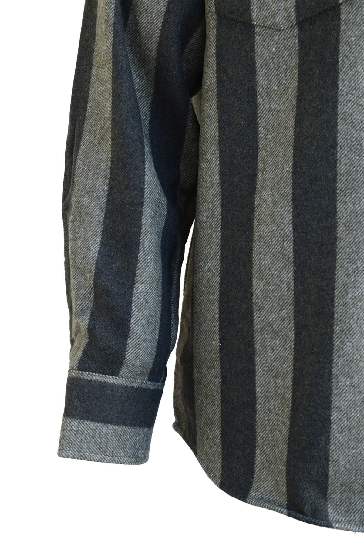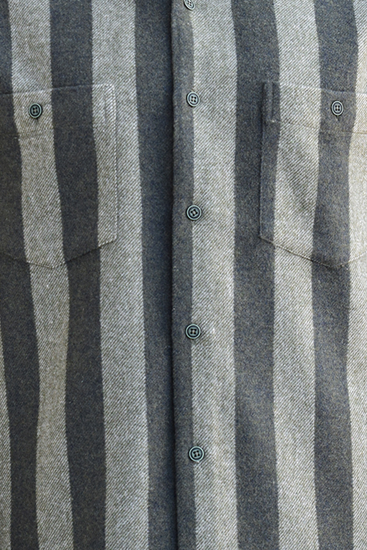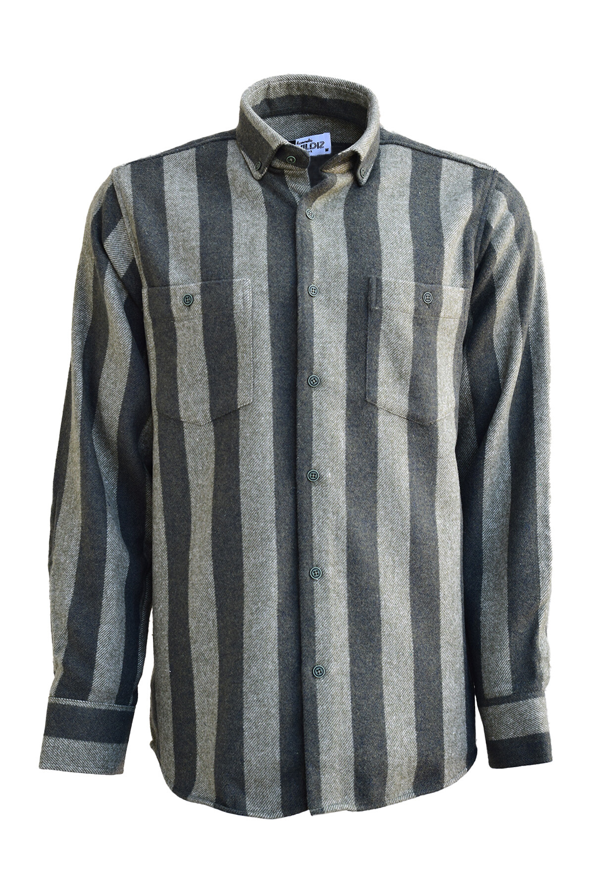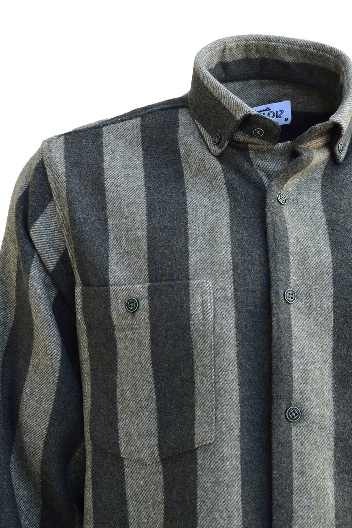 Koyu ve Açık Yeşil Çizgili Düğmeli Yaka Çift Cepli Klasik Kesim Oduncu Gömlek