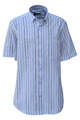 Beyaz Üzeri Lacivert ve Açık Koyu Mavi Çizgili Düğmeli Yaka Tek Cepli Klasik Kesim Pamuklu Kısa Kol Erkek Gömlek