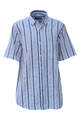 Beyaz Üzeri Kalın Lacivert ve İnce Yeşil Çizgili Düğmeli Yaka Tek Cepli Klasik Kesim Pamuklu Kısa Kol Erkek Gömlek