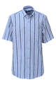 Beyaz Üzeri Kalın Lacivert ve İnce Mavi Çizgili Düğmeli Yaka Tek Cepli Klasik Kesim Pamuklu Kısa Kol Erkek Gömlek