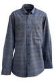 Gri Kiremit Ekose Çift Cepli Düğmeli Yaka Klasik Kesim Kışlık Pamuklu Erkek Gömlek