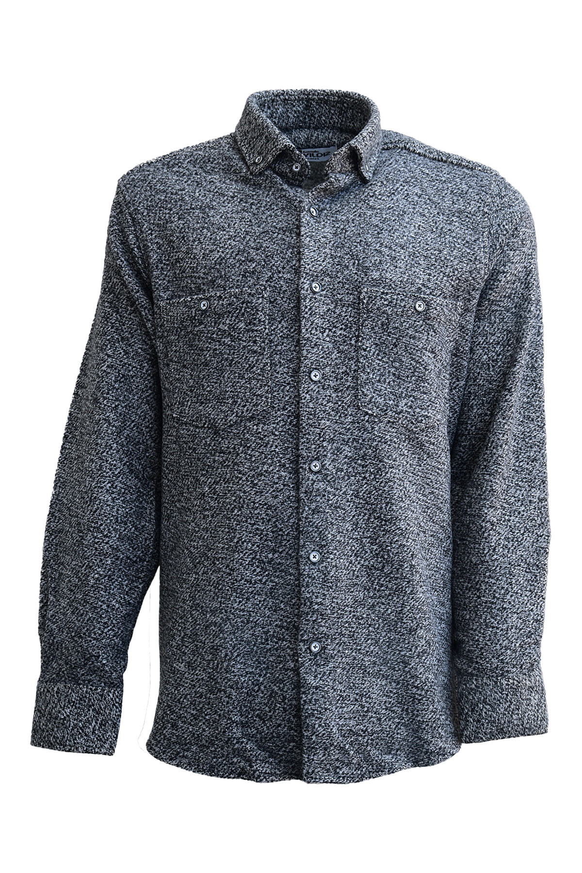 Gri-Siyah Kırçıllı Düğmeli Yaka Çift Cepli Klasik Kesim Oduncu Gömlek